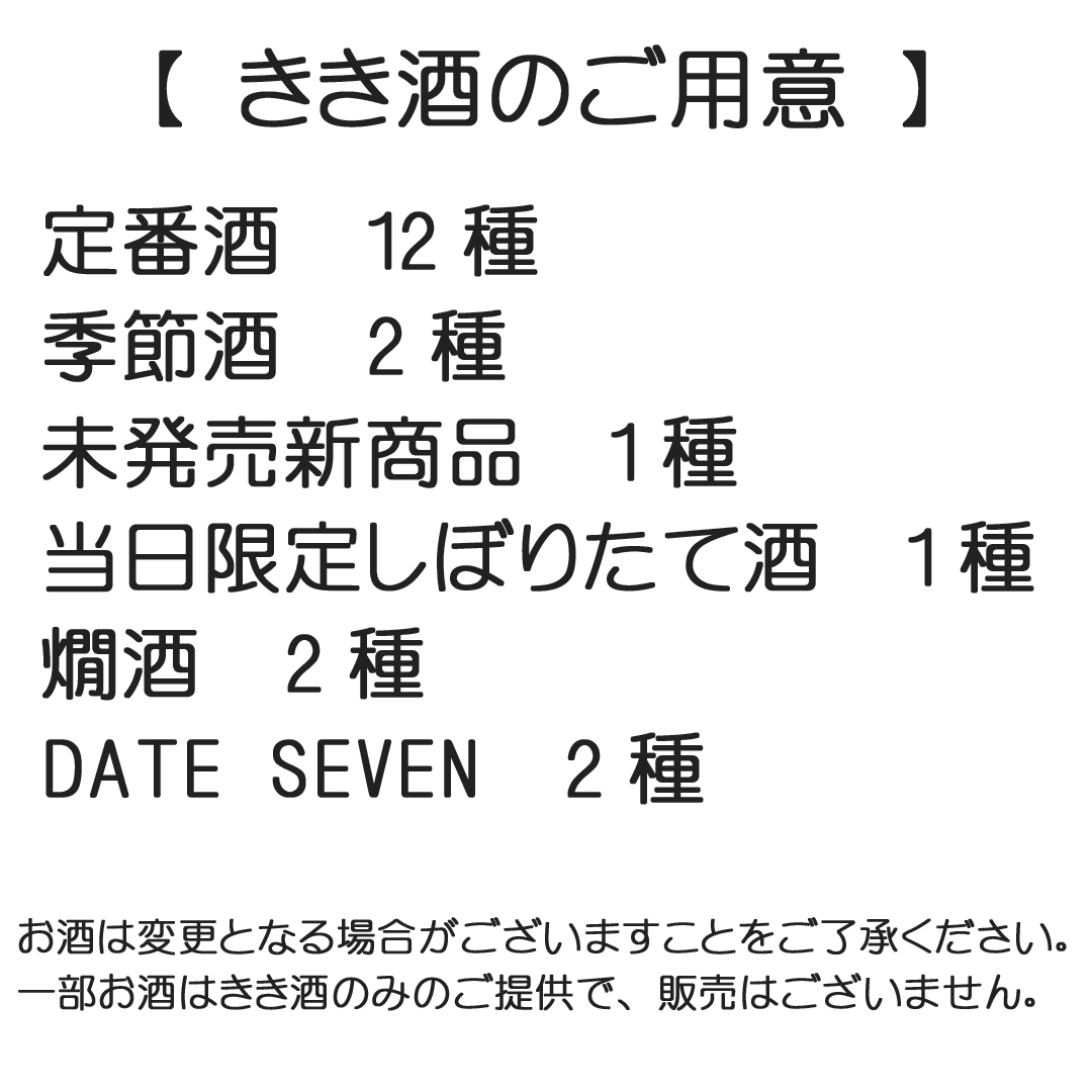 ・あくまで「きき酒」ですので節度を保った飲酒をお願いします。大声での歓談等はお控えください。
