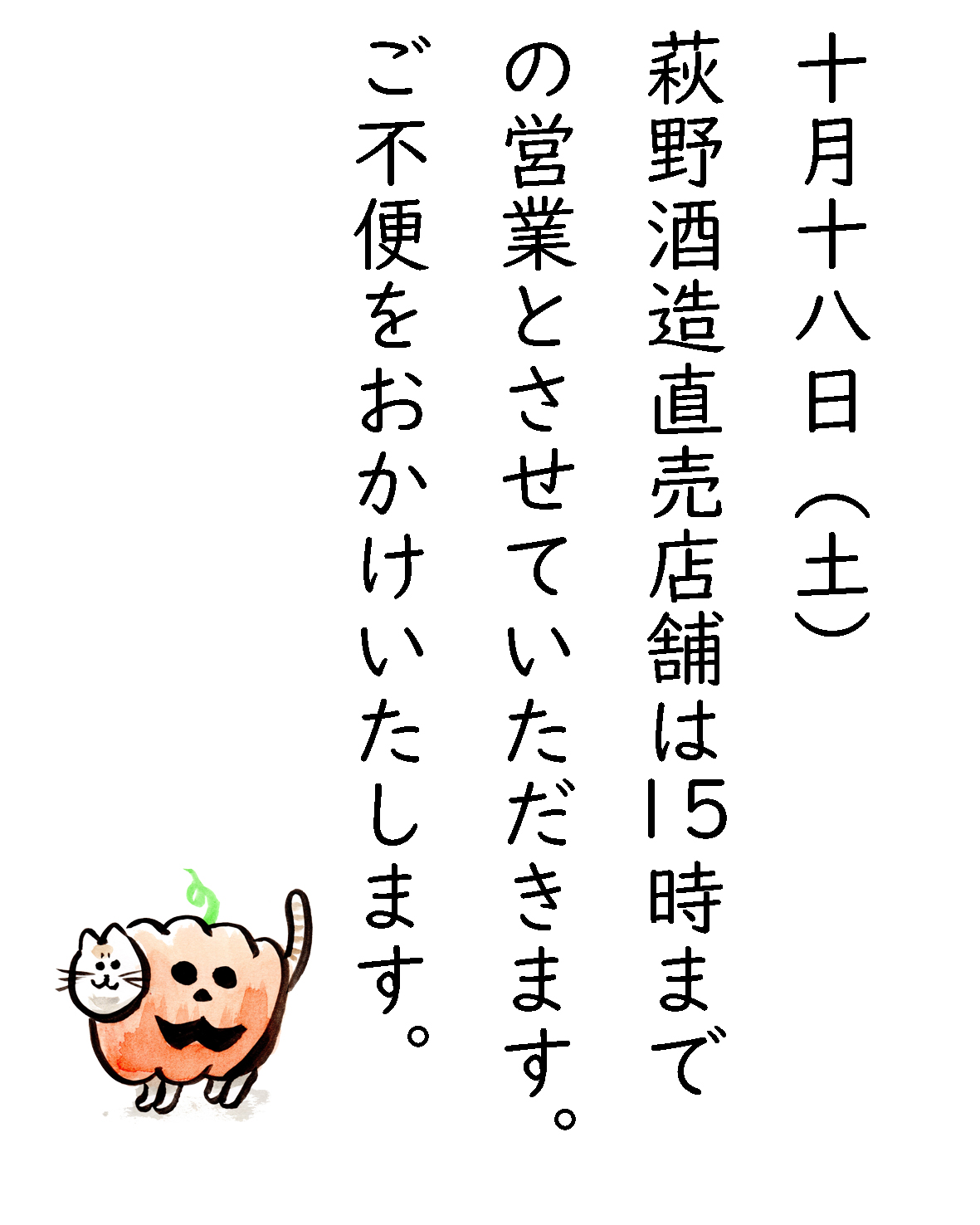 「萩の鶴 ハロウィン猫」発売のお知らせ